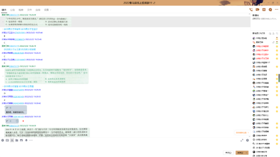 在課堂交流互動階段,一個章節(jié)的講授完成后,王耕老師讓大家暫時放下筆記,來到手機(jī)QQ群。他首先隨機(jī)點名兩位同學(xué),讓其將本節(jié)課的筆記拍照上傳QQ群,在指出同學(xué)筆記中的優(yōu)缺點后,老師在QQ群中開始了第一階段的課堂小測,通過QQ群內(nèi)粘貼早已準(zhǔn)備好的習(xí)題,讓隨機(jī)點到的同學(xué)在群內(nèi)公布自己的答案并發(fā)送語音說明理由,老師再在直播間進(jìn)行分析和答疑,及時對授課內(nèi)容進(jìn)行查漏補(bǔ)缺。這種方式不僅調(diào)動了學(xué)生在教室進(jìn)行線上教學(xué)的積極性,同時還盡可能地監(jiān)督學(xué)生出勤以及維持課堂教學(xué)秩序和紀(jì)律,滿足教學(xué)質(zhì)量要求。