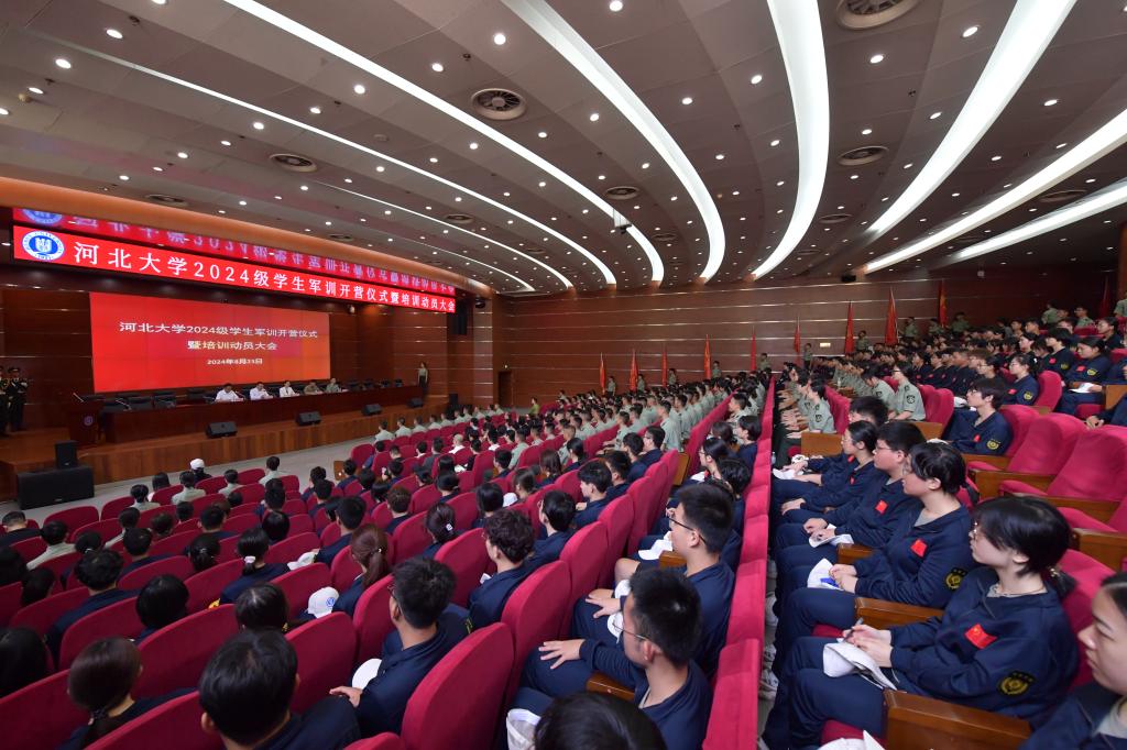 全體承訓教官,國旗護衛(wèi)隊助理教官,各院系主管學生工作團委書記、學工辦主任,2024級參訓學生代表等近500人參加開營儀式。